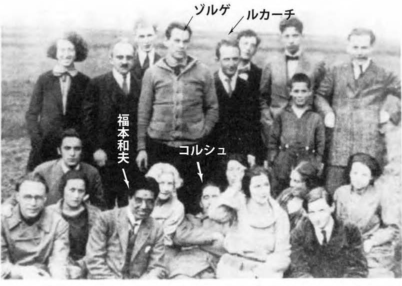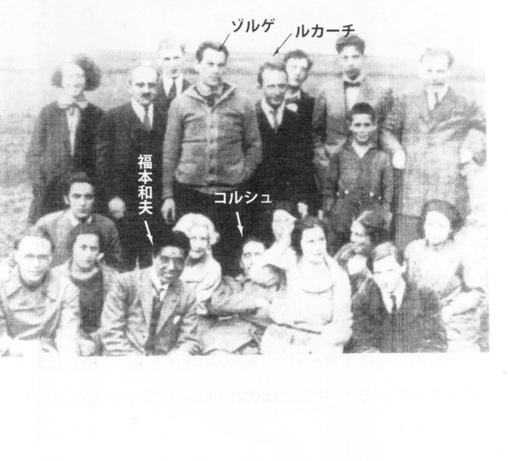 ● 福本和夫の入った下の写真は、『運動史研究』第13号の福本和夫特集(1984年)以降、日本ではルカーチ、コルシュと福本、ゾルゲが一堂に会した歴史的写真として知られるようになった。