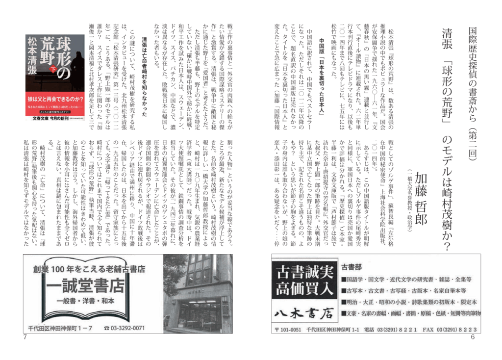 ● この謎について、崎村茂樹を研究する私は、インタビューを受けた。北九州松本清張記念館『松本清張研究』第13号(2012年)に、こうある。