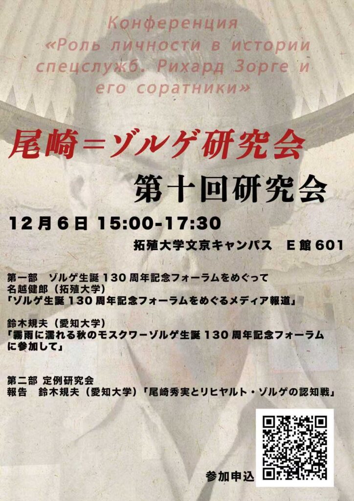 詳しくは、新設された尾崎=ゾルゲ研究会ホームページをご参照ください。または、愛知大学の尾崎=ゾルゲ研究会事務局(20221107os@gmail.com)にお問い合わせください。